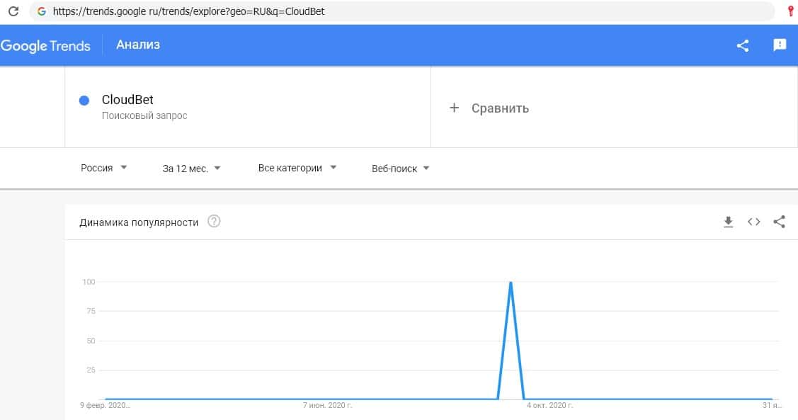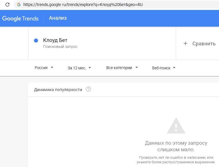 - Анализ количества поисковых запросов по бренду Клоуд Бет в google trends