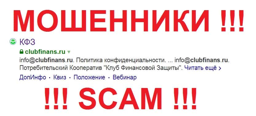 - Обзор официального интернет-ресурса аферистов Клуб Финансовой Защиты