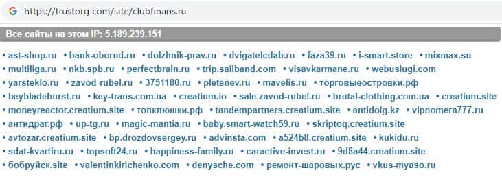 На информационном сайте trustorg com была произведена проверка ip-адреса мошеннической организации Клуб Финансовой Защиты. Выяснилось, что сайт данной скам-организации находится по соседству с интернет-порталами, которые не имеют никакого отношения к рынку Форекс, а именно с новостными веб-порталами и интернет-магазинами.