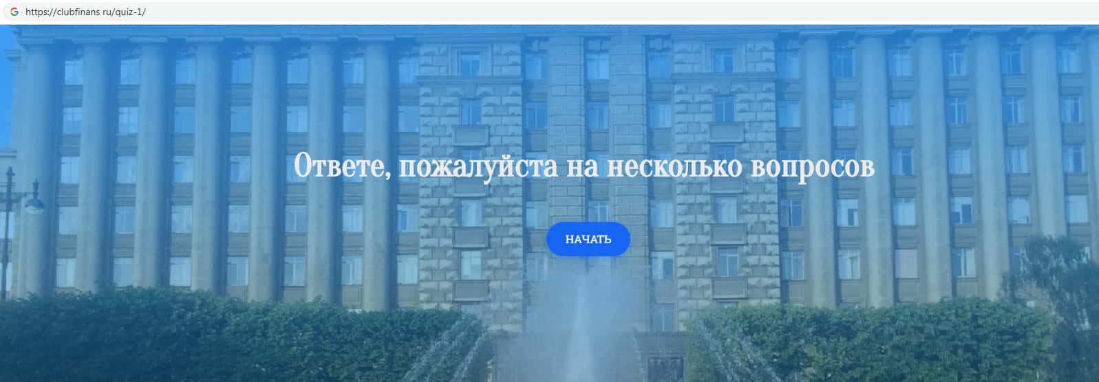 Аферисты Клуб Финансовой Защиты просят пользователей ответить на несколько вопросов, на которые отвечать не рекомендуем, поскольку после того, как Вы заполните бланк, жулики от Вас просто так не отвяжутся по той причине, что главной целью лохотрона является воровство денежных средств у честных доверчивых людей.