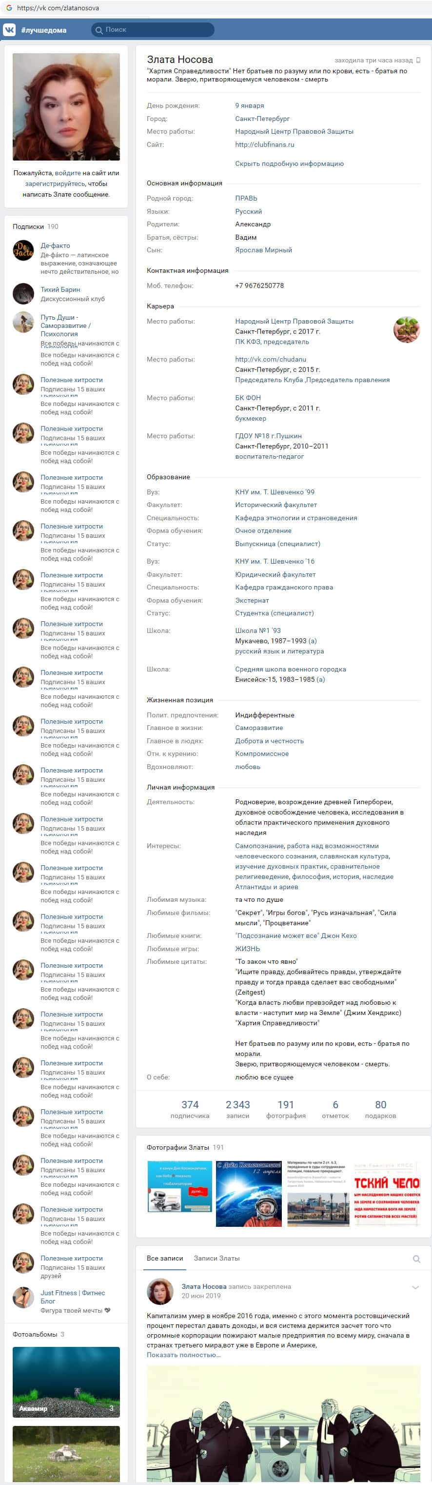 Мошенники ClubFinans Ru приняли такое решение в открытую о себе не заявлять и не создавать страницы в соц сетях с названием своей скам-организации. Некая Злата Носова на сайте vk com решила на своей странице оставить ссылку на их дырявый интернет-ресурс и конечно же заметно приукрасить всю информацию о себе, чтобы втереться в доверие людей.