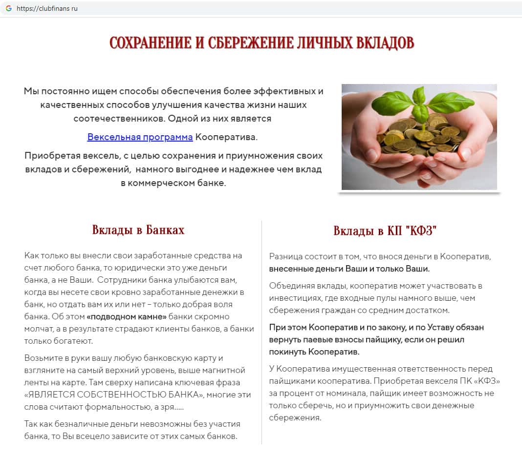 - Что рассказывают жулики Клуб Финансовой Защиты о своем потребительском кооперативе?