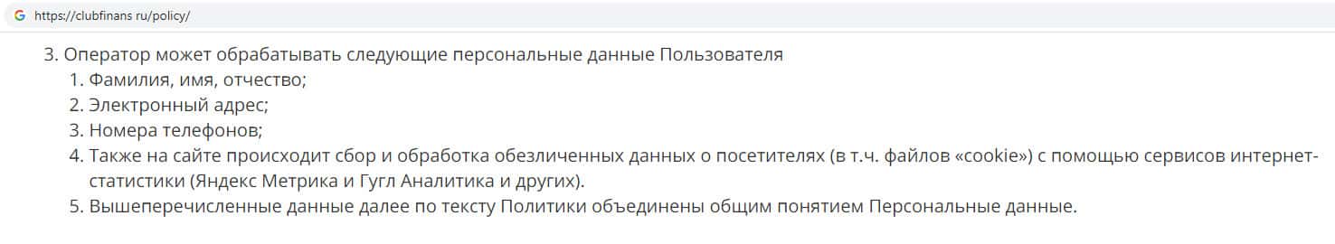 - Политика в отношении обработки персональных данных на сайте шараги ClubFinans Ru