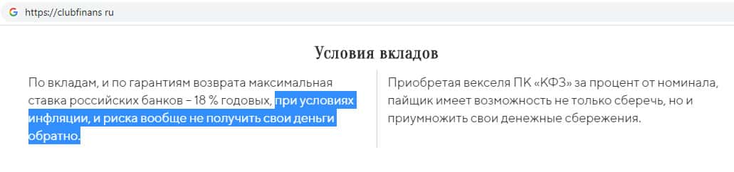 Аферисты ClubFinans Ru когда рекомендуют инвестировать свои деньги именно на их дырявом сайте, тут же рассказывают о том, что вкладывая свои денежные средства в банк, деньги принадлежат банку, а не Вам. Не верьте данной мошеннической организации !!! Жулики специально лгут, чтобы казаться лучше и современнее, чем банковские системы.