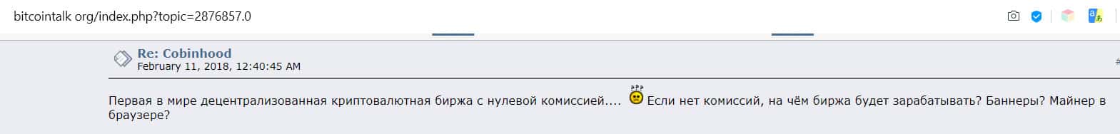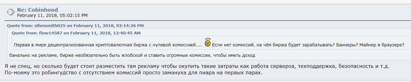 - Еще один комментарий от участника форума Биткоинток о том, что Cobinhood - это замануха для лохов