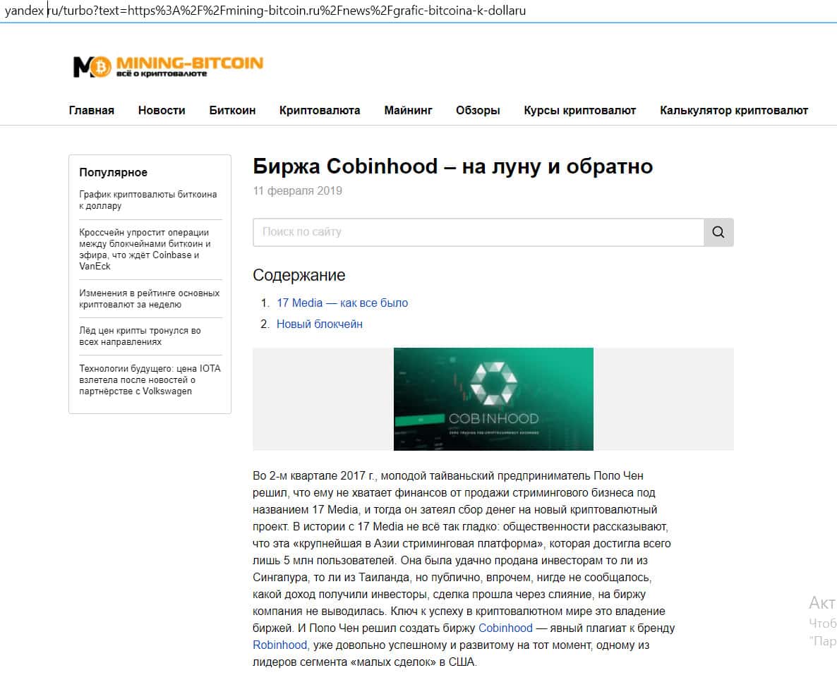 - История о сомнительном прошлом руководителя Кобинхуда на странице Mining-bitcoin