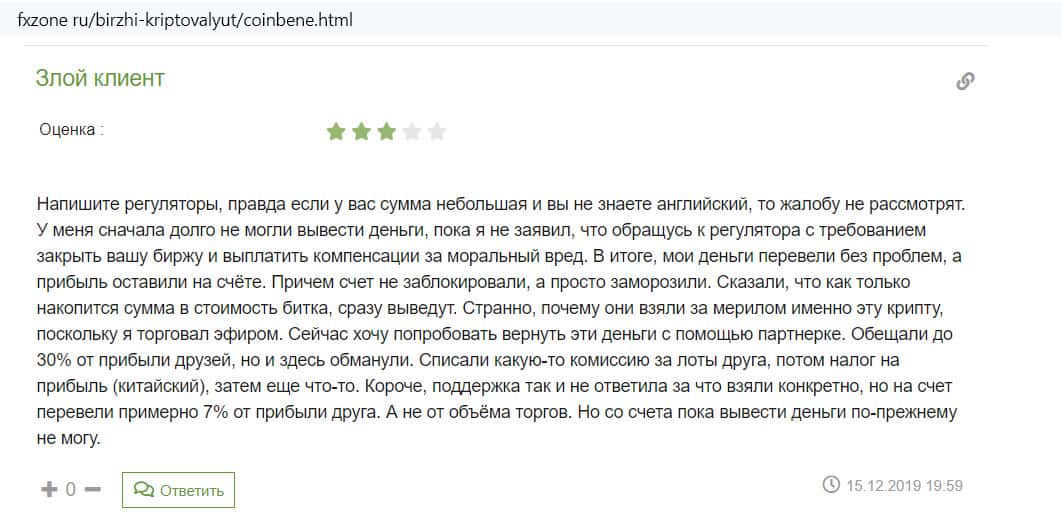 Основные минусы работы биржи CoinBene по версии сайта fxzone ru