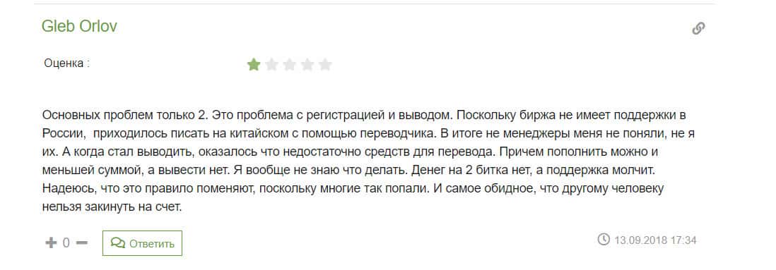 Еще один негативный отзыв о нечестной деятельности биржи Коин Бене разместили на сайте Рускоинсинфо. В нем говорится, что трейдеру, незнакомому с правилами работы биржи, не был зачислен депозит. Человек обратился в техподдержку, но ему никак не помогли. Он назвал службу поддержки ужасной, как сама компания.