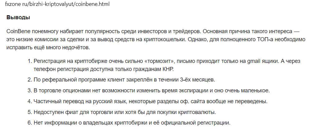 - Основные минусы работы биржи CoinBene по версии сайта fxzone ru