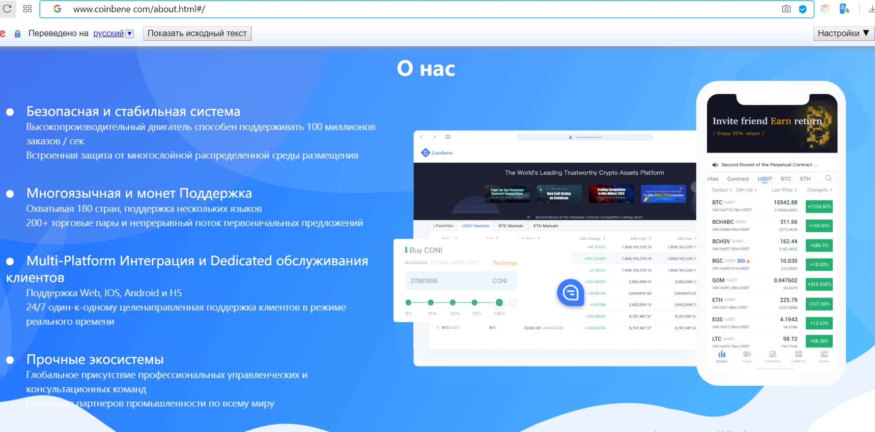 coinbene com - официальный сайт брокерской компании Коин Бене