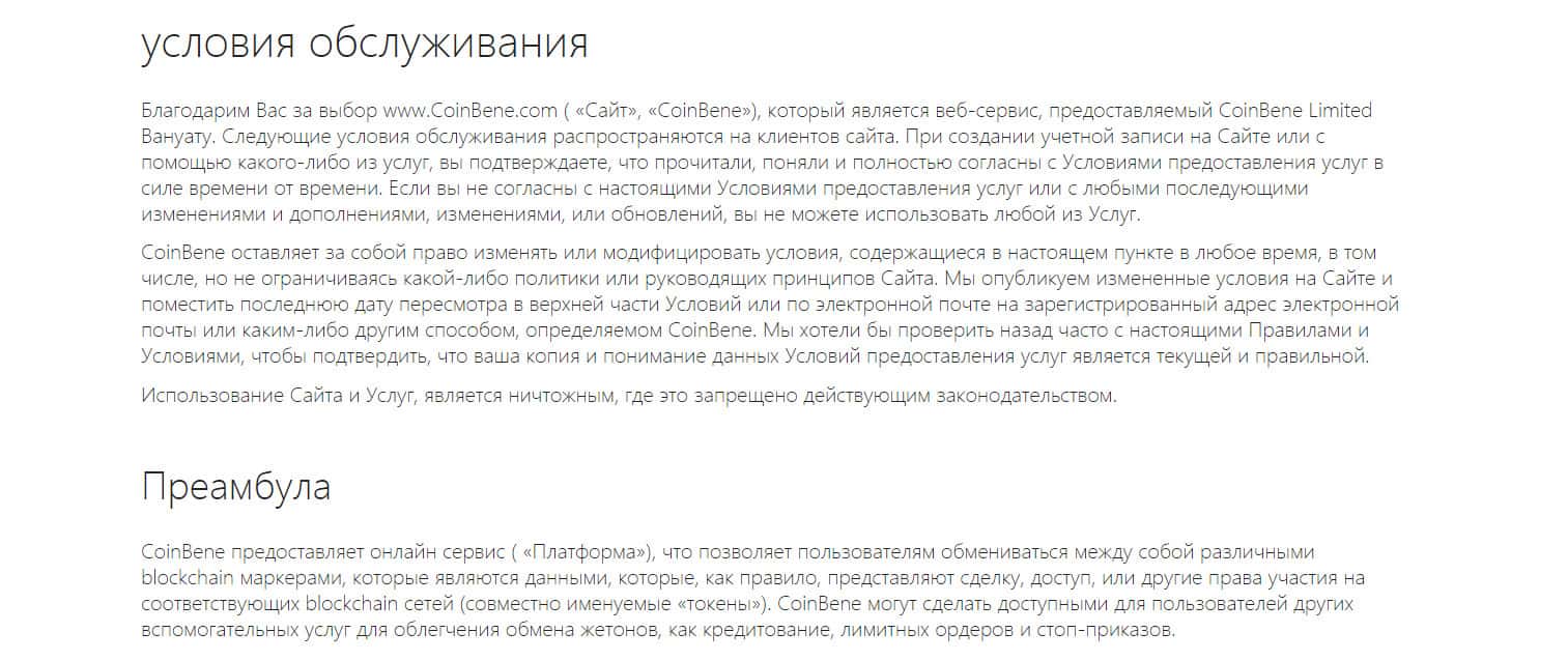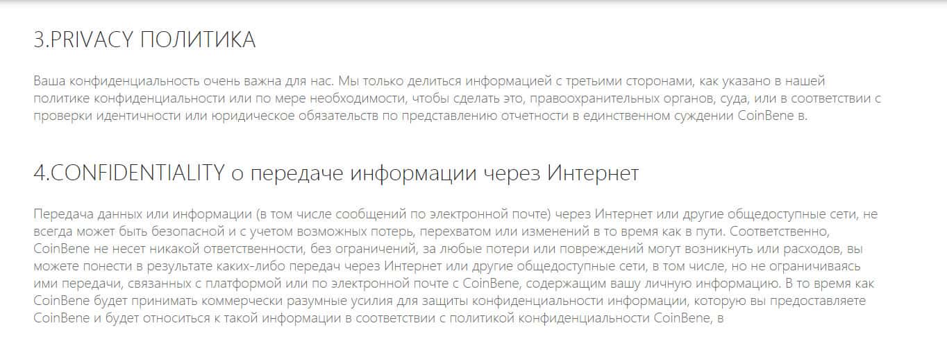 - Клиентское соглашение и политика конфиденциальности компании CoinBene