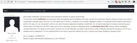 Не стеснялись брокер жулик CoinBrokerz под предлогом выдуманных комиссий и тп. списали со счета еще одного человека вложенные им средства. После этого трейдер поделился своим опытом сотрудничества с аферистами Коин Брокерз на сайте форум мани-инвестинг ком.