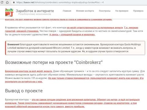 Статьи с популярных трейдерских сайтов о лохотроне Коин Брокерз