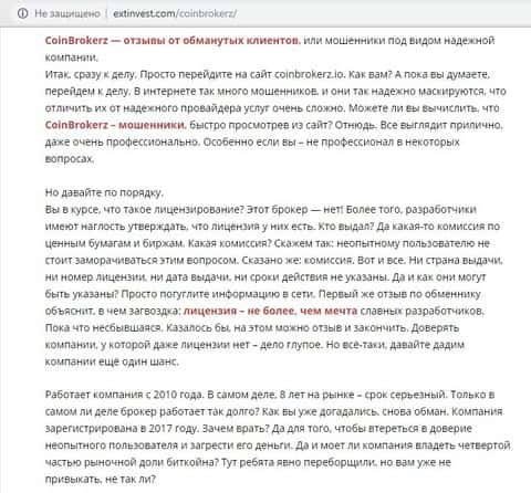 Ну и при разводе у мошенников CoinBrokerz нету ничего сверхъестественного, а именно основной их инструмент попытки повлиять на человеческую лень и жадность, благодаря которым совершается большая часть преступлений. Своим опытом трейдеры поделились на сайте extinvest com.