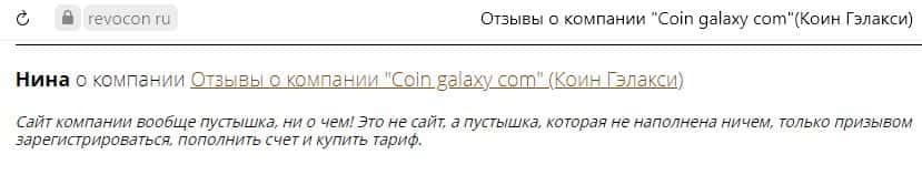 Мнение пользователей о подвальном сайте шарашки Coin Galaxy