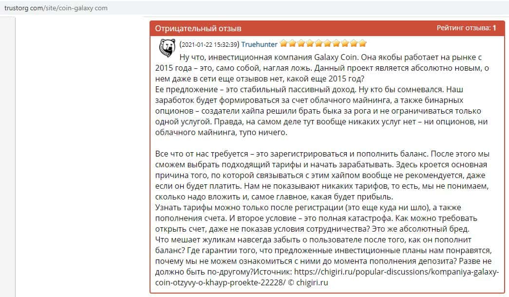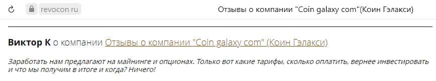 - Мнение пользователей о подвальном сайте шарашки Coin Galaxy