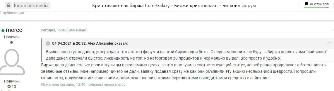 Отзывы о криптовалютной мутнобирже Коин Гэлэкси