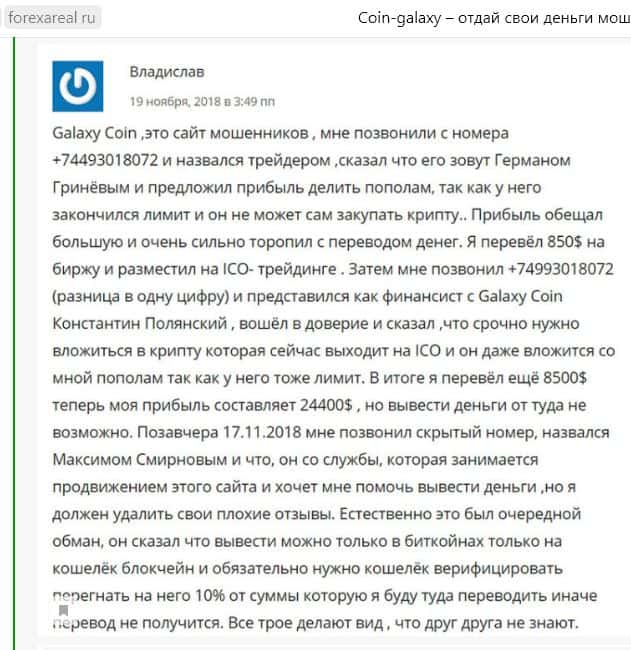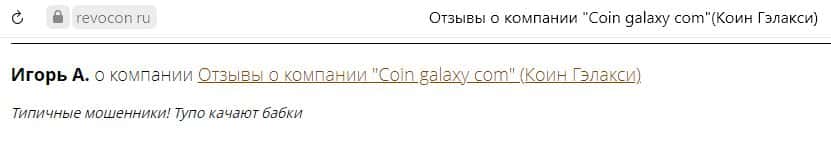 Тупо качают бабки - сделал отзыв о проходимцах Coin Galaxy еще один пользователь.