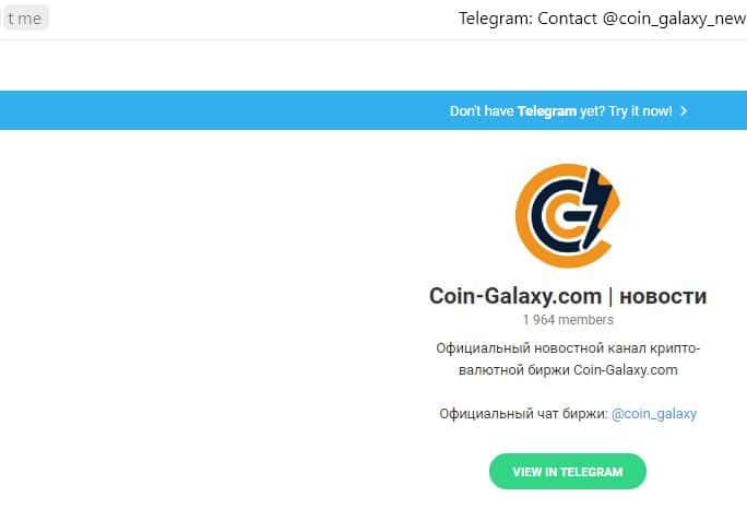 На страницу в Telegram вы сможете попасть, только если зарегистрируетесь и тогда уже точно не скоро выберетесь из цепких лап аферистов Коин Гэлэкси.