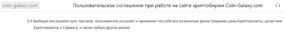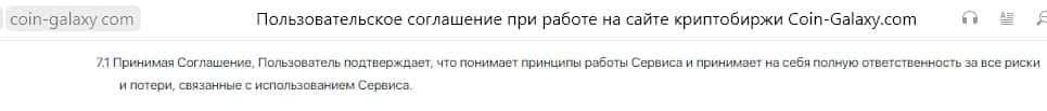- Условия соглашения для работы на криптовалютном лохотроне Коин Гэлэкси