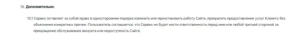 Мошенники в одностороннем порядке могут заблокировать работу сайта, без объяснения причин прекратить предоставление услуг клиенту и не желают нести никакой ответственности за последствия этих действий.