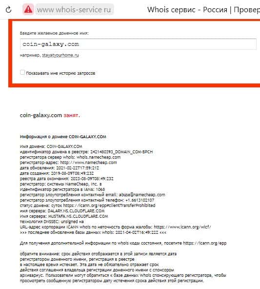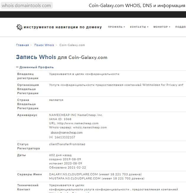 - Кто является владельцем доменного адреса coin-galaxy com?