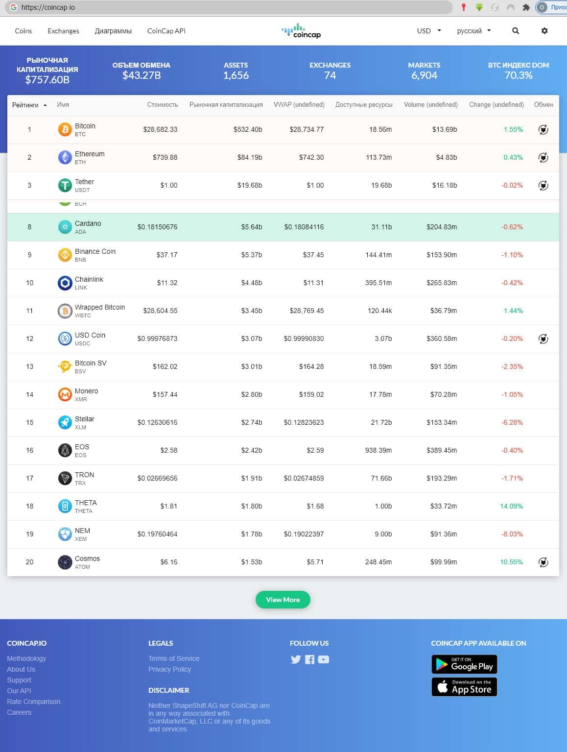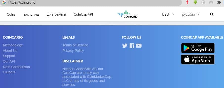 coincap io - непосредственно сайт мошеннического проекта Коин Кап