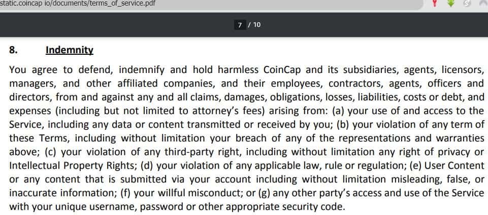Клиент криптоконторы Коин Кап обязуется всюду защищать её интересы и возмещать любые её убытки и убытки, связанны с конторой лиц и организаций, в том числе на юристов.