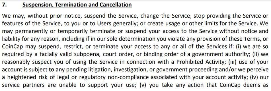 Компания Коин кап может в любой момент прекратить своё существование как по причине, так и без причины.