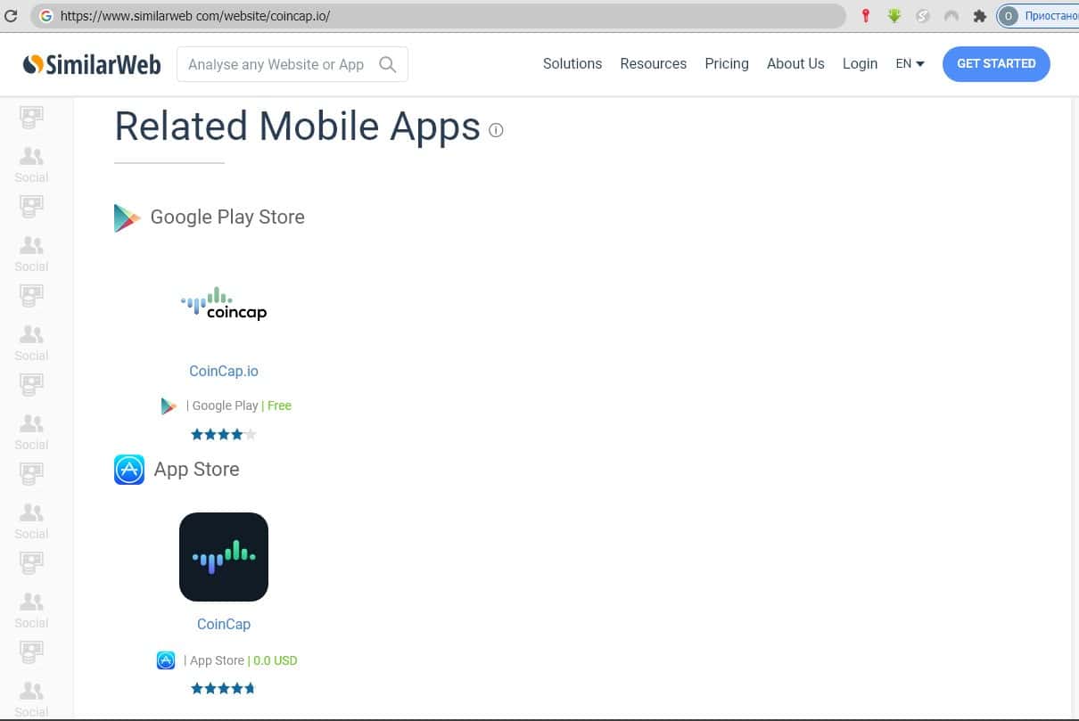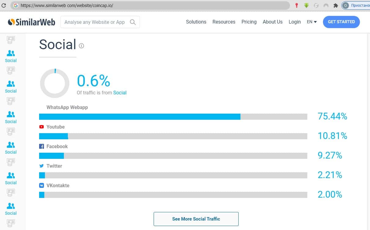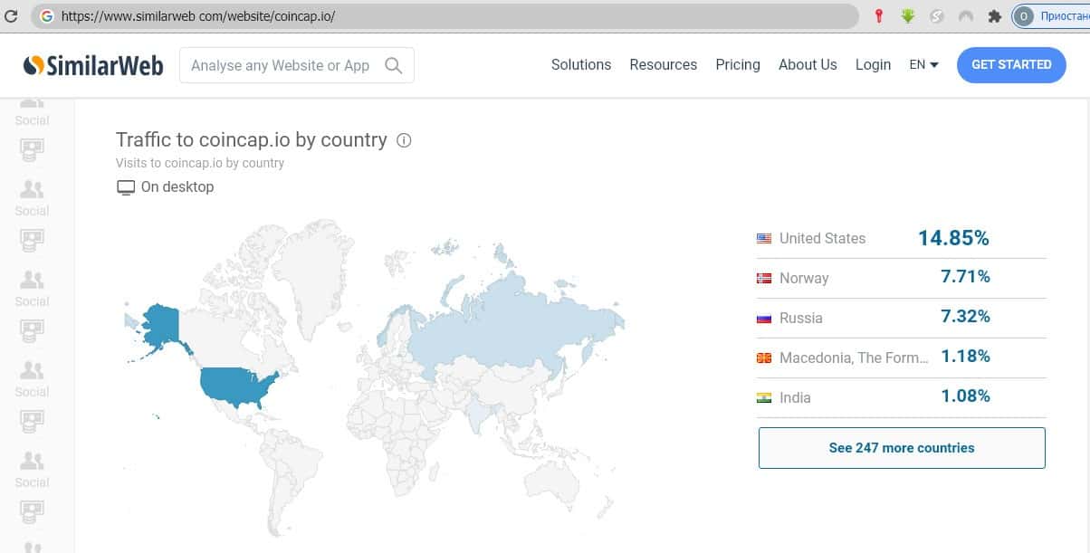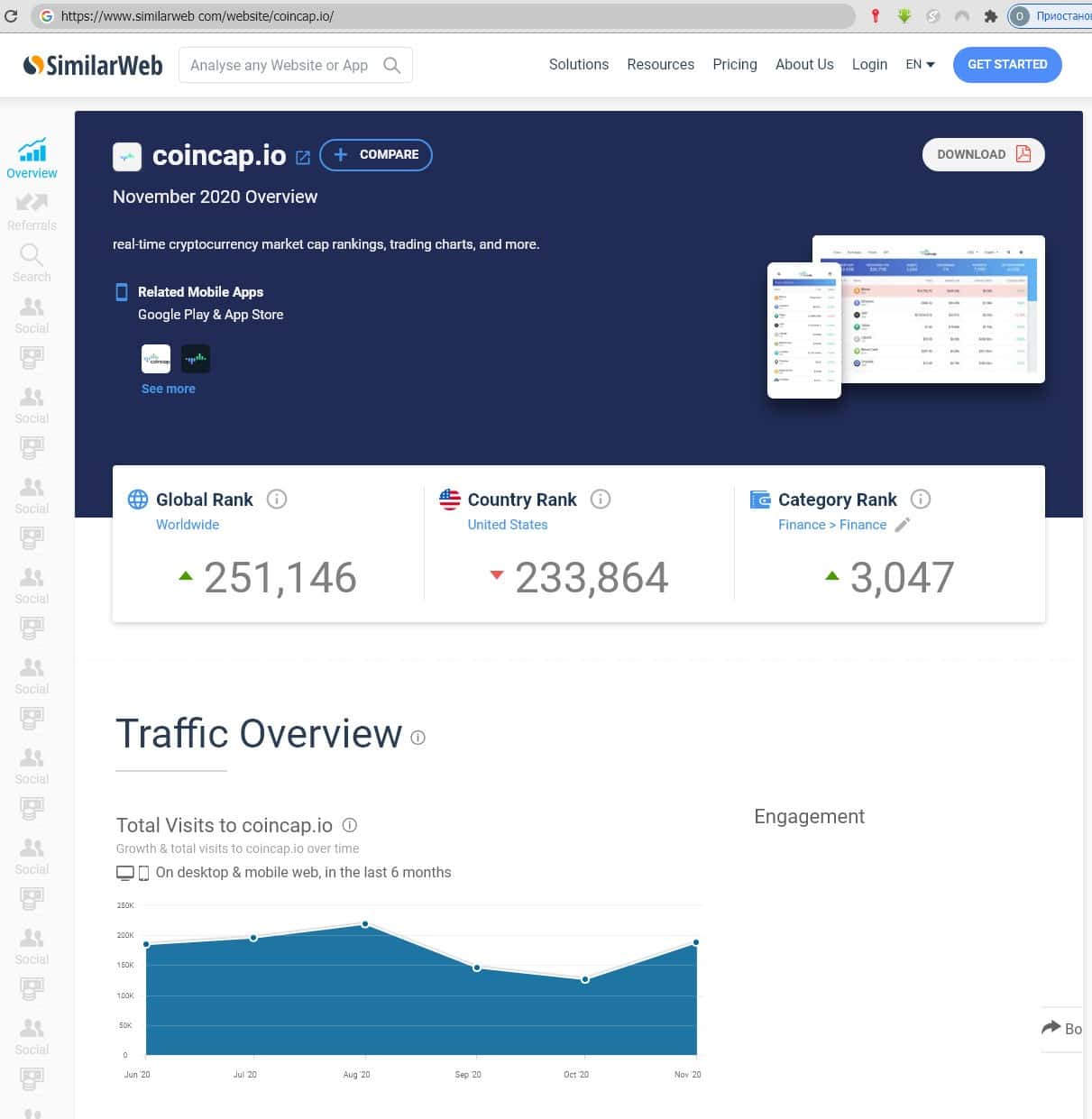 Портал similarweb com приводит довольно неплохие как для мошеннического проекта количественные показатели трафика сайта coincap io.
