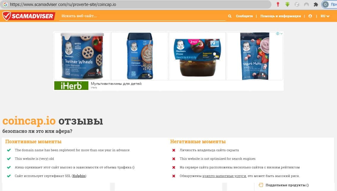 Рекомендация портала scamadviser com не доверять сайту криптовалютного брокера Коин Кап