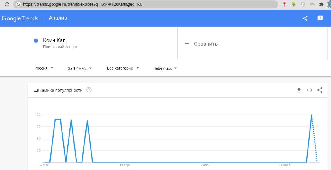 - Аналитика количественных показателей запросов о криптовалютной конторе Коин Кап в системе Google