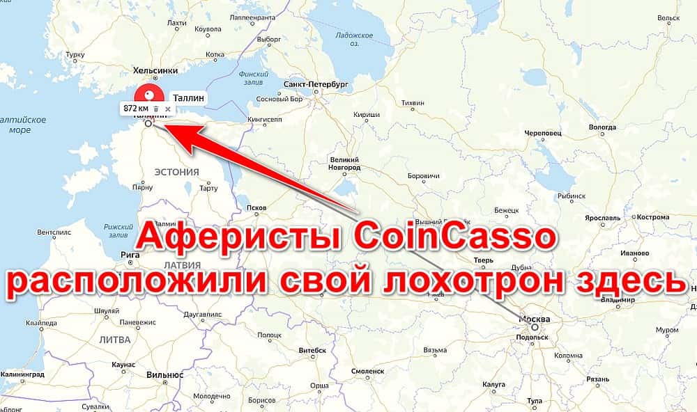 Адрес своей лохушни авантюристы CoinCasso на сайте обозначили. Предполагаемое местонахождение этого скверного недопроекта находится в эстонском городе Таллин.