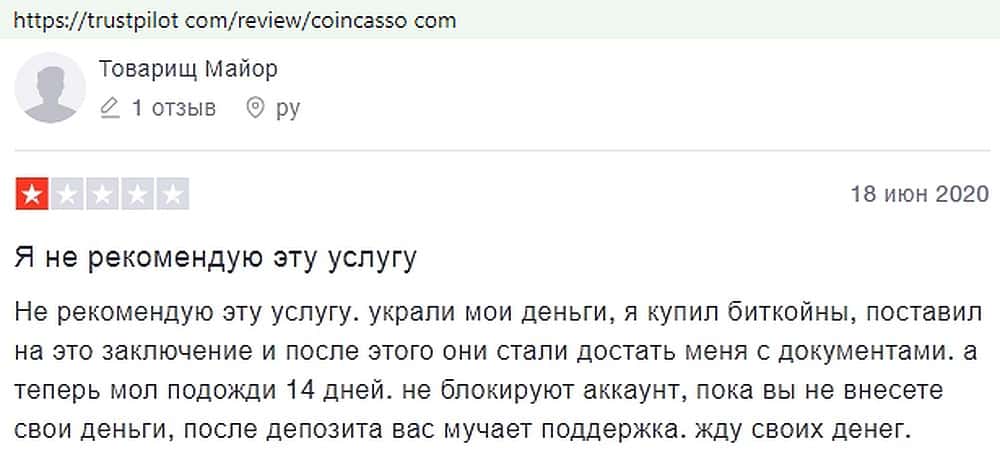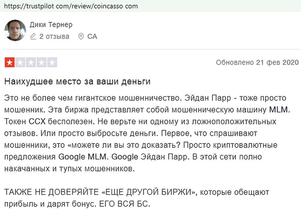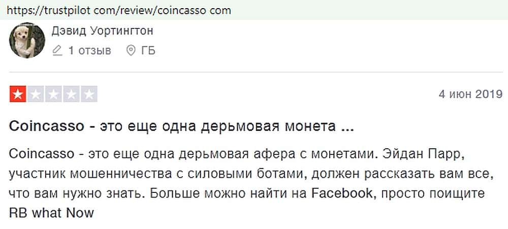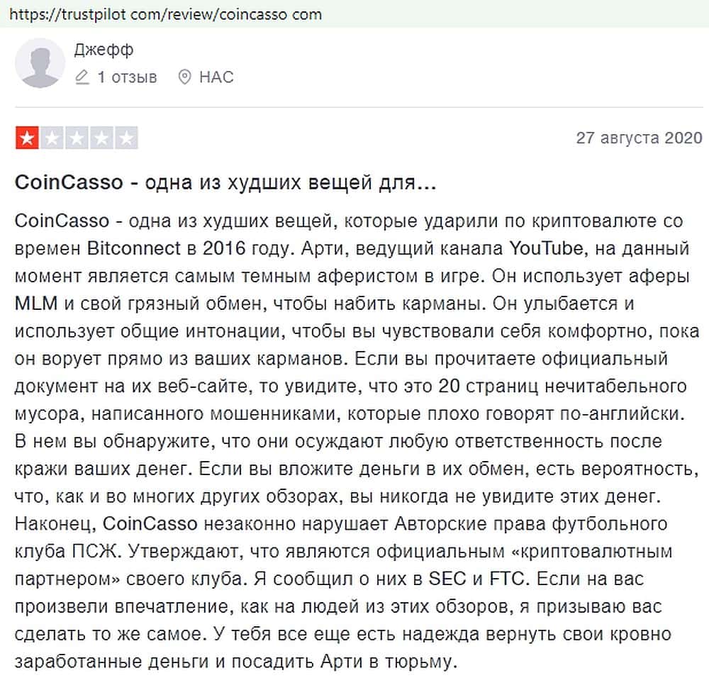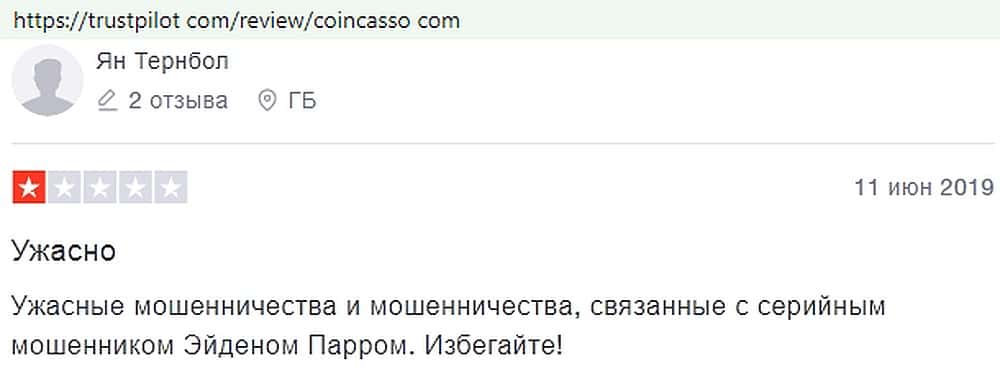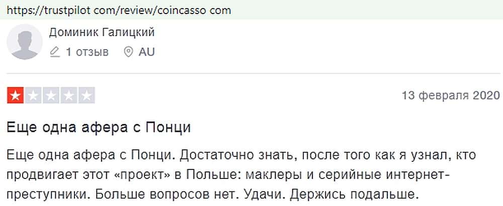Подобный предыдущему отзыв оставил еще один бдительный участник дискуссии, посвященной авантюре Коин Кассо. Он предостерегает от сотрудничества с этими пройдохами.