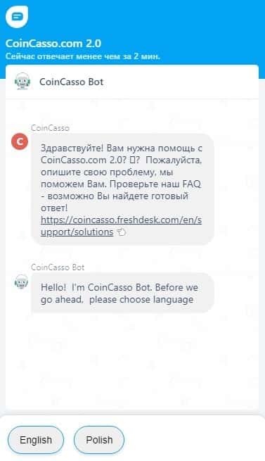 Второй способ хоть как-то связаться с мошенниками Коин Кассо - это так называемый "живой чат", который на самом деле является просто виджетом и абсолютно бесполезен.