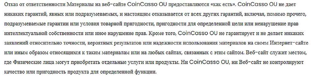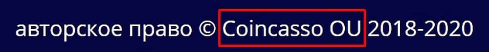 Жулики Коин Кассо не скрывают, что имеют юридическую подоплеку своего лоходрома. Организация, которая якобы управляет криптоловушкой, имеет название Coincasso OU.