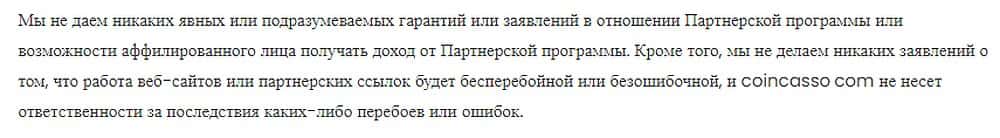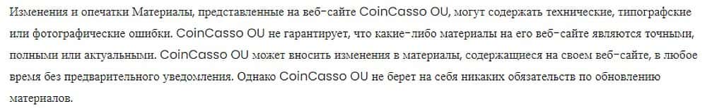 Но даже своих таких завлекал аферисты CoinCasso могут кидануть в любой момент. Для этого им будет просто достаточно изменить свое недосоглашение, или вовсе не платить.