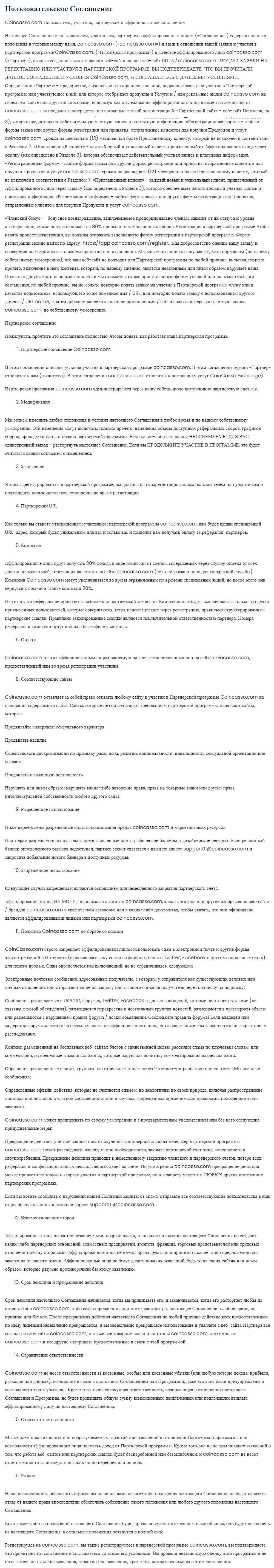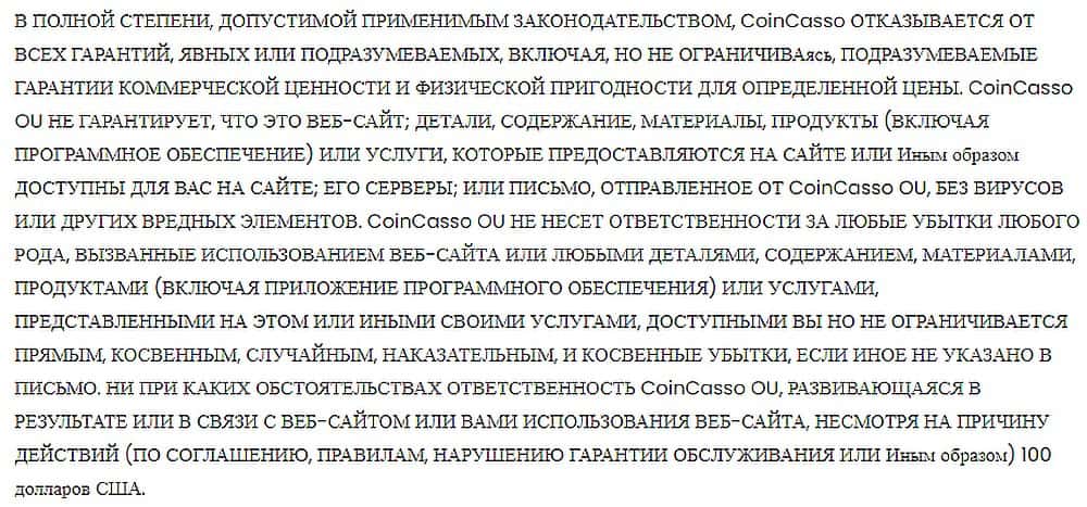 Также, на сайте наперсточников coincasso com можно найти второй договор, который они окрестили Условия Использования. В нем еще больше подводных камней, нежели в первом.