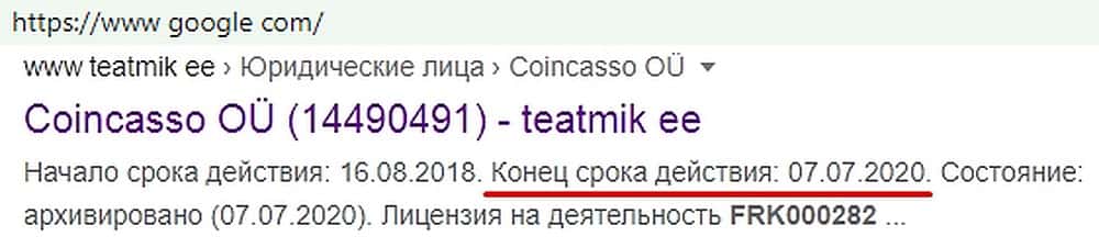 Но вот незадача. Срок действия лицензии хапуг Коин Кассо, на момент написания данной статьи, истек уже более чем на полгода, а это означает, что каталы действуют вне закона.