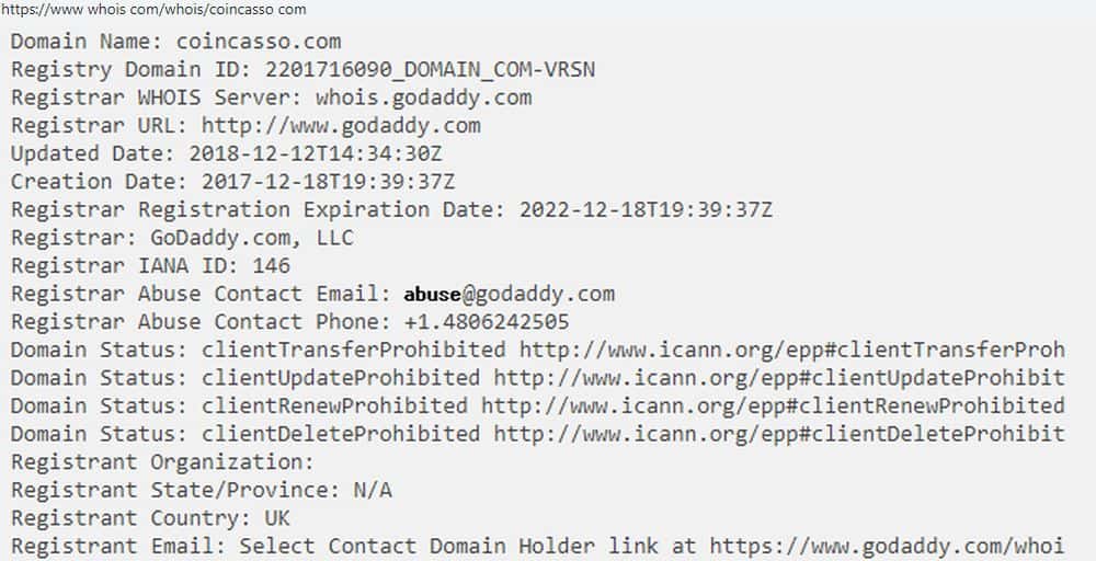 Кому принадлежит домен криптовалютных лоховодов CoinCasso?