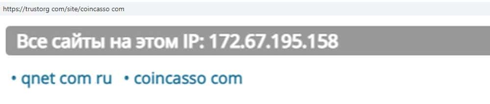 Какие еще лохотроны сидят с кидалами CoinCasso на одном IP?