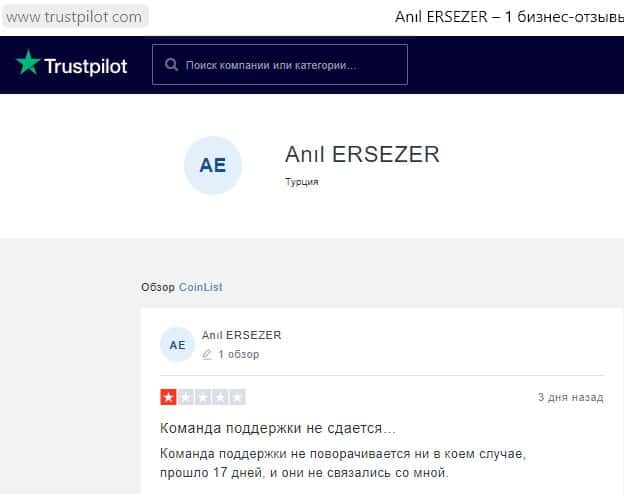 Отзыв другого клиента: прошло 17 дней, а команда поддержки Коин Лист и не поворачивается.
