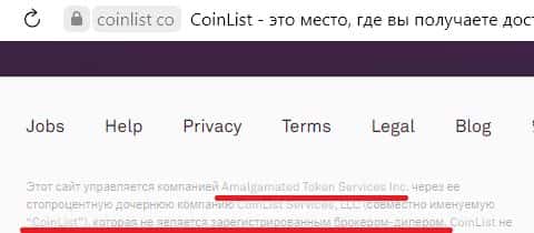 По информации, предоставленной пройдохами Коин Лист сайт coinlist co управляется компанией Amalgamated Token Services через ее дочернюю компанию CoinList.
