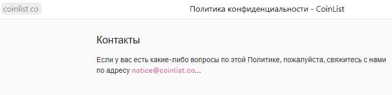 - Контактные данные мошенники Коин Лист запрятали среди условий Соглашения
