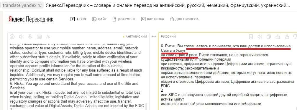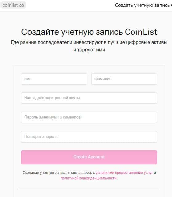 Реально у проходимцев Коин Лист работает только окошко со сбором данных о потенциальных жертвах дальнейшего развода.Условия клиентского Соглашения лоховозки CoinList Co