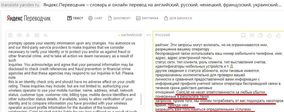 Шаромыжники Коин Лист стремятся выудить как можно больше сведений о своих клиентах, а потому не ограничивают круг своих запросов. Но вот ответственности за убытки, понесенные вследствие таких запросов, на себя не берут.