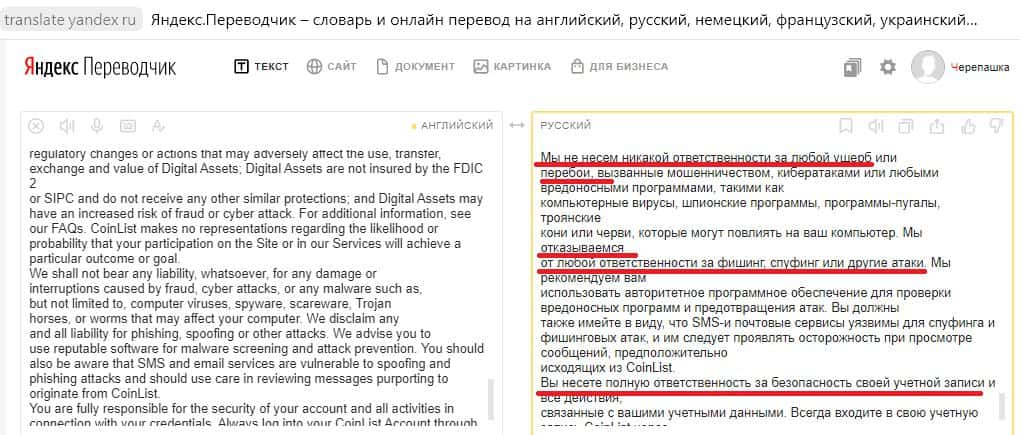 Кроме этого, проходимцы Коин Лист открещиваются от любых сбоев на своем сайте, от фишинга и спуфинга, а значит знает, что они возможны.