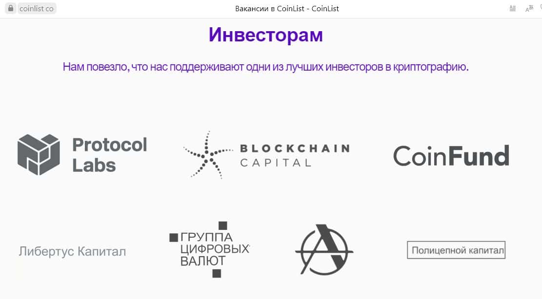 Проходимцы Коин Лист нарисовали себе массу инвесторов, которые вроде как поддерживают их. Но, во-первых, информации на сайте доверять нельзя (и в этом мы уже неоднократно убеждались).
