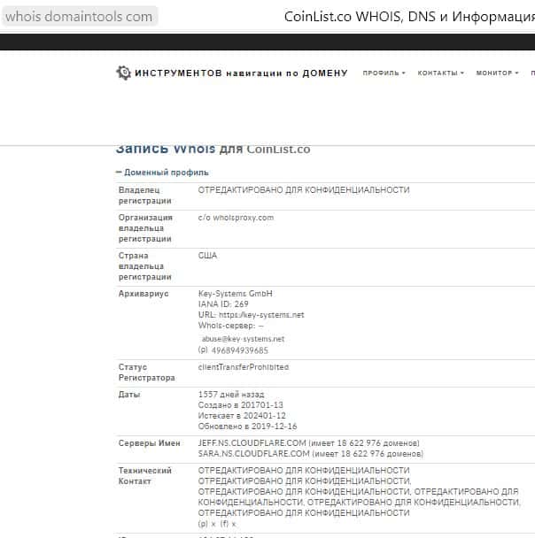 - Хозяин домена coinlist тщательно скрывается от глаз пользователей