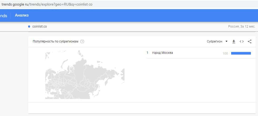 По количеству брендовых запросов названия "CoinList Co" на trends google ru нет никакой информации.